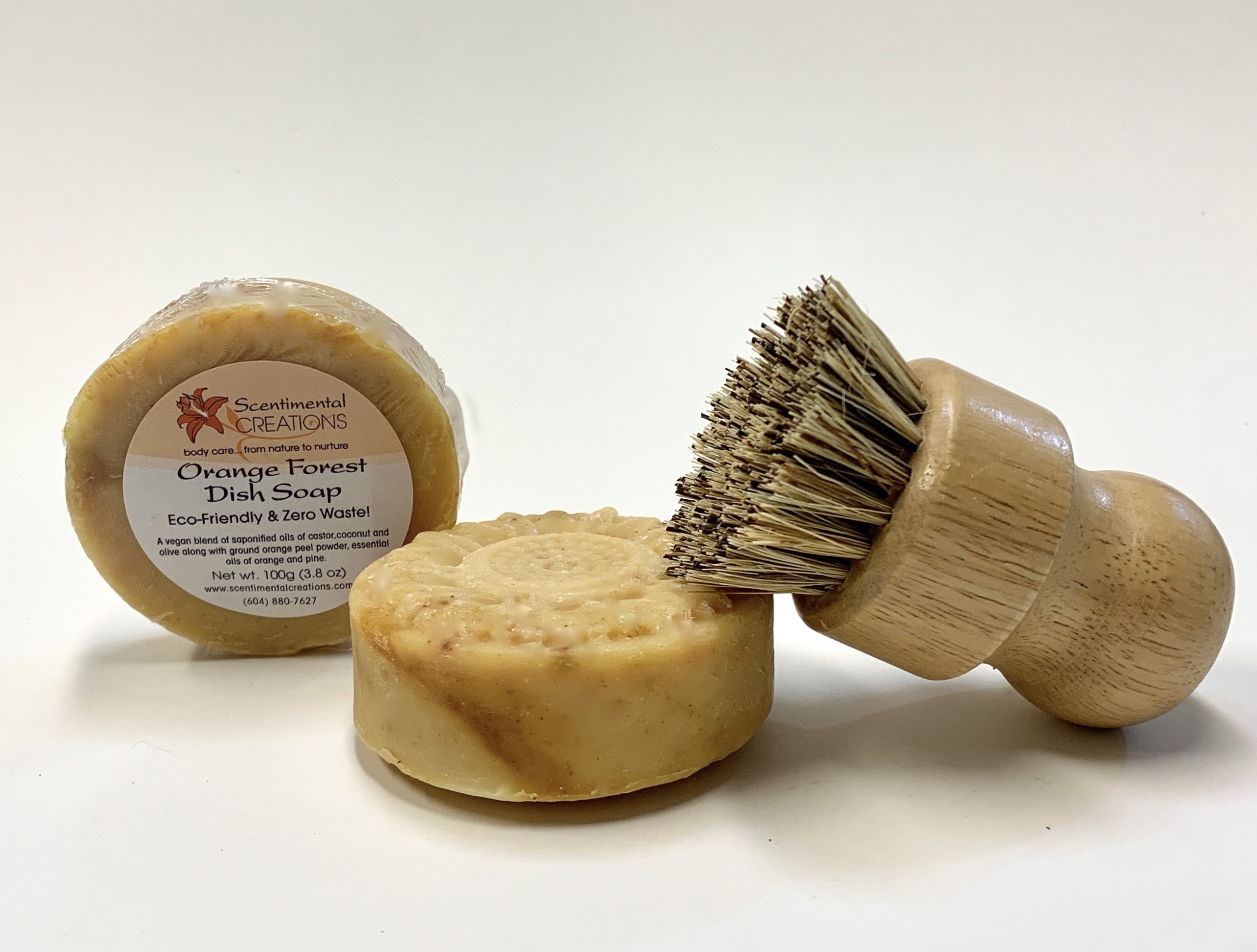 Our dish soap bars are all-natural and great on cutting stubborn grease and baked-on food! Our formula is free from harsh chemicals and the best choice for everyday household use. This zesty fresh dish bar is a kitchen essential. Made in low volume, with a vegan blend of saponified oils of coconut, castor, and olive along with essential oils of orange and pine with a pinch of madder root powder for colour.